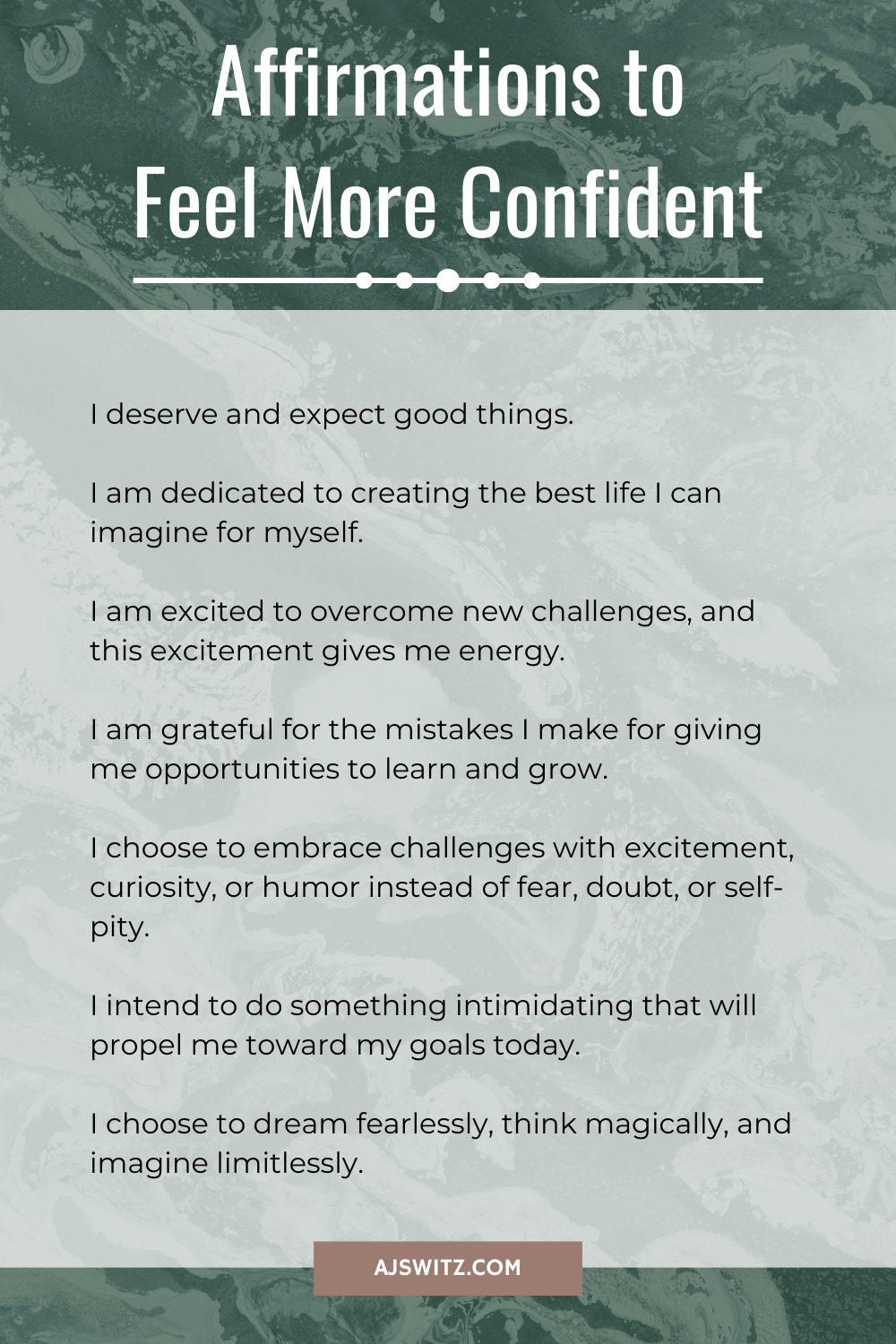 The more intentional practice you put into being more confident, the more instinctive it becomes. You have control over your thoughts. Your thoughts are what shape your reality. So you can look at all the universe has to offer as terrifying and too much for you to handle. Or you can look at it all as a bounty of infinite possibilities just for you.
