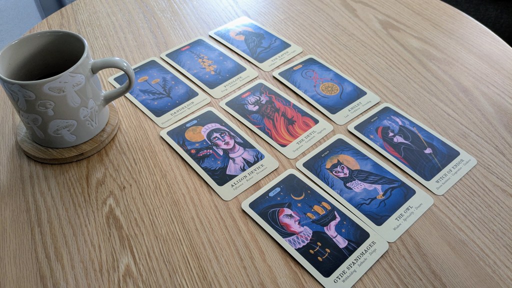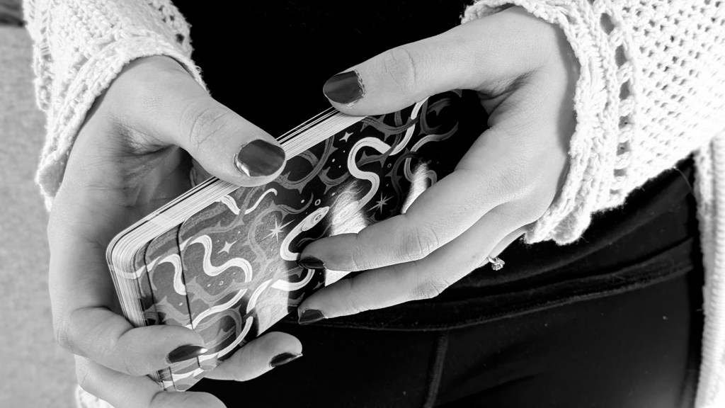 I didn’t think my usual reading method of question-shuffle-pull-spread-interpret was going to help, so I opted for a more intuition-led approach.